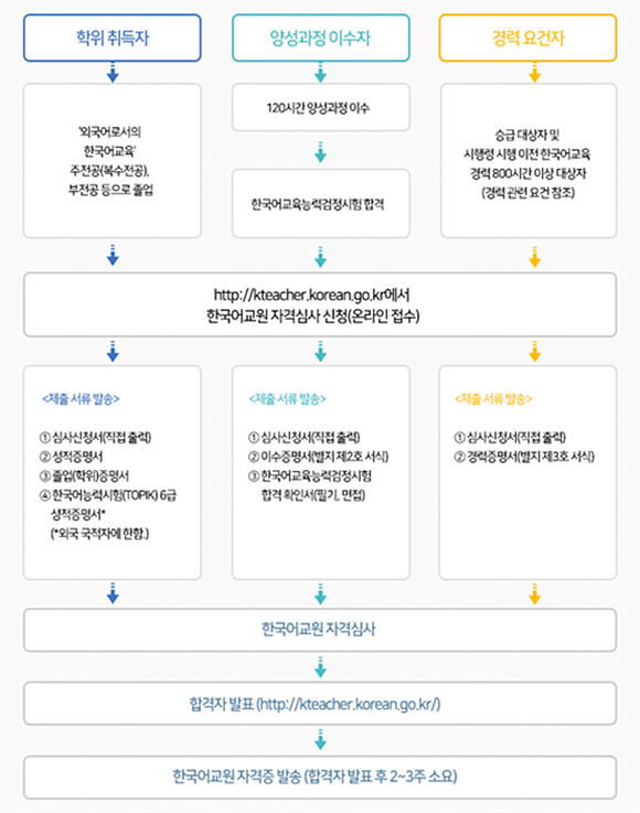 자세한 사항은 국립국어원 한국어교원 누리집(http://korean.go.kr) 참고