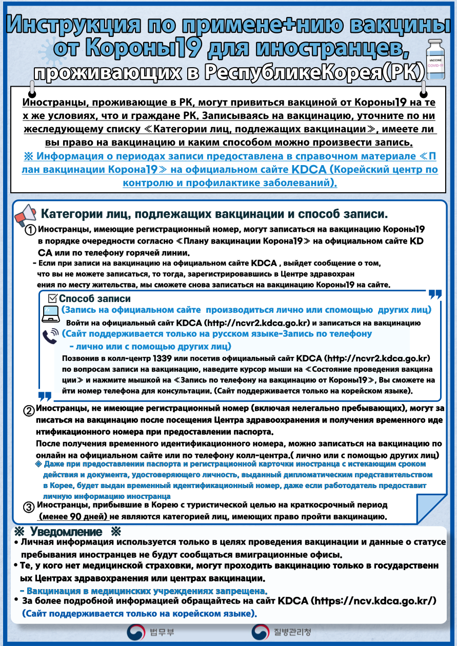 7 국내 체류 외국인 코로나19 백신 접종 안내/Vaccin guide for Foreign Students/新冠疫苗接种指引 대학원 21-08-31 550   국내체류외국인 백신접종안내문 수정본(러시아어).png