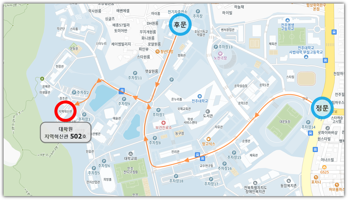 전주대학교 대학원 오시는 길입니다.